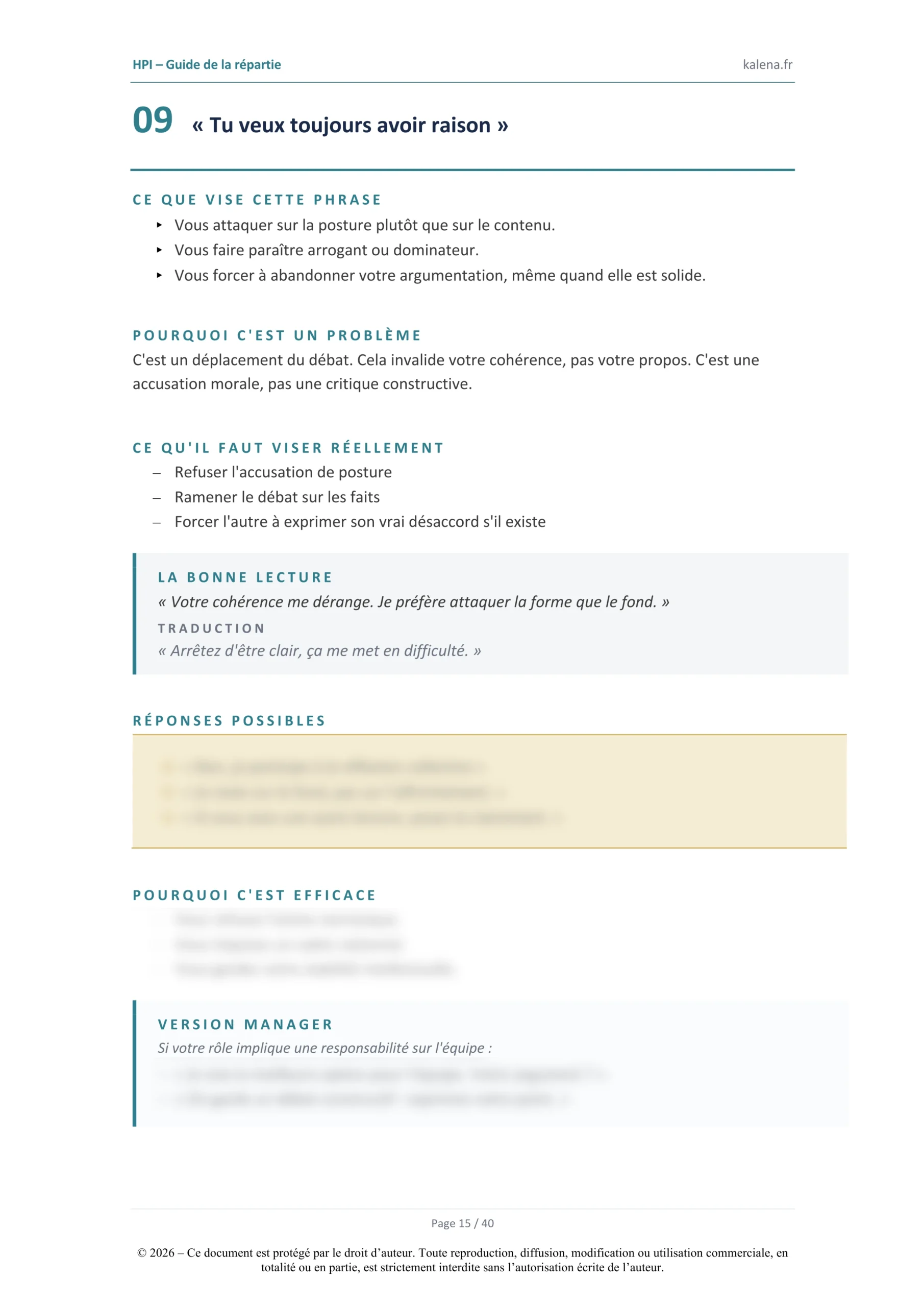 - L’hostilité comme mécanisme de défense : Apprendre à identifier quand l’interlocuteur cherche à vous « éteindre » pour protéger son propre ego.